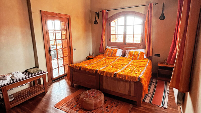 La chambre Golden vous accueille dans un écrin de luxe discret. Spacieuse et élégante, elle combine confort moderne et touches de décoration raffinées. Profitez d’une literie de qualité et d’un environnement paisible, pour un séjour inoubliable dans le cœur de l’Atlas marocain.