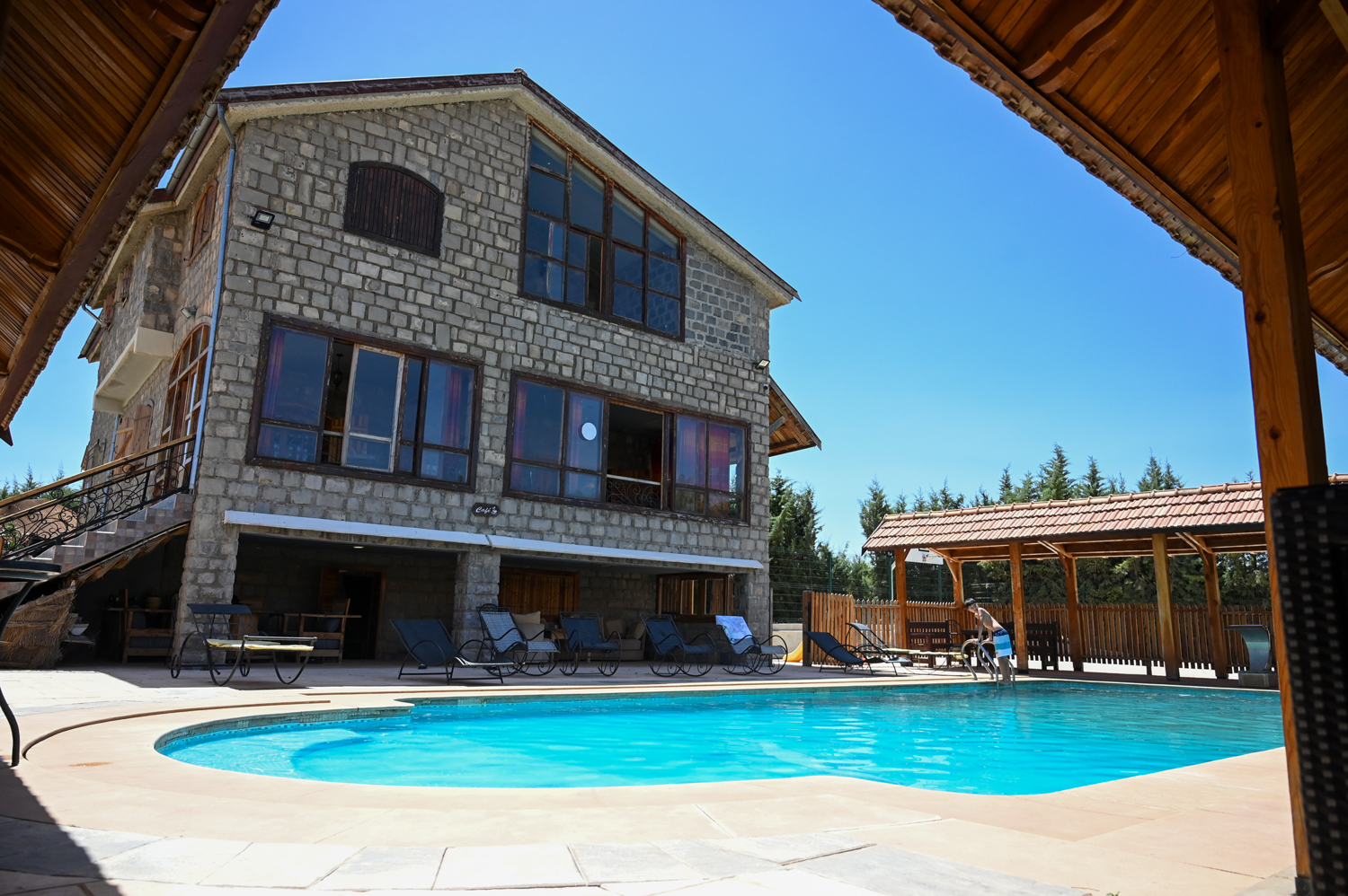 Nichée dans un cadre naturel paisible, notre piscine vous invite à la détente. Transats, parasols et serviettes sont à votre disposition pour un confort absolu, en solo, en couple ou en famille.