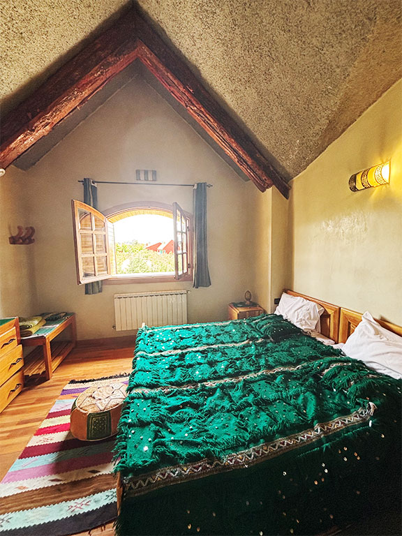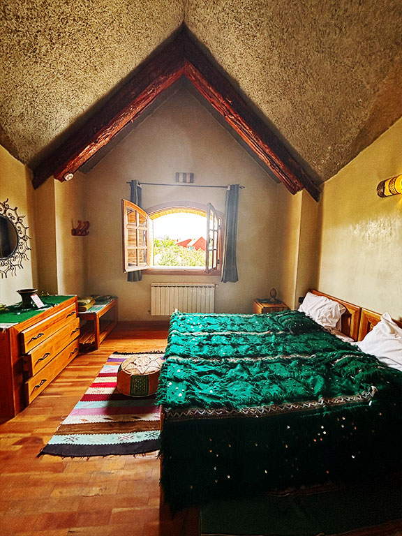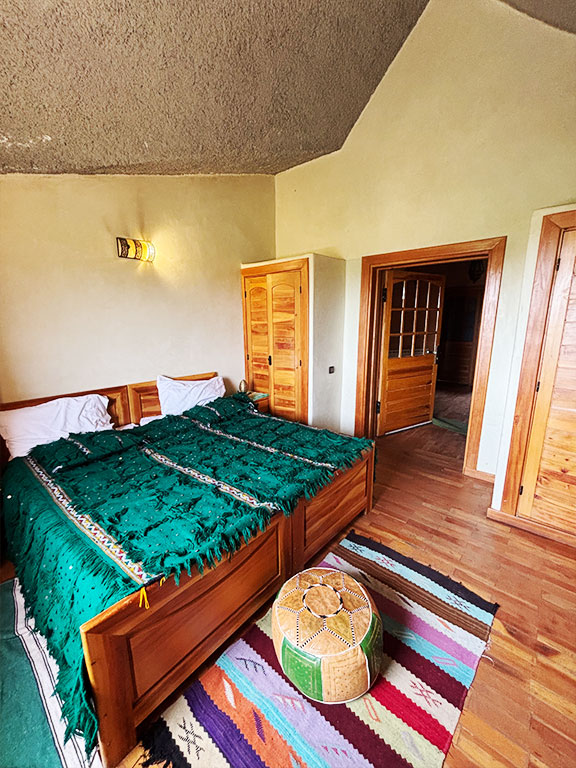 La chambre Golden vous accueille dans un écrin de luxe discret. Spacieuse et élégante, elle combine confort moderne et touches de décoration raffinées. Profitez d’une literie de qualité et d’un environnement paisible, pour un séjour inoubliable dans le cœur de l’Atlas marocain.